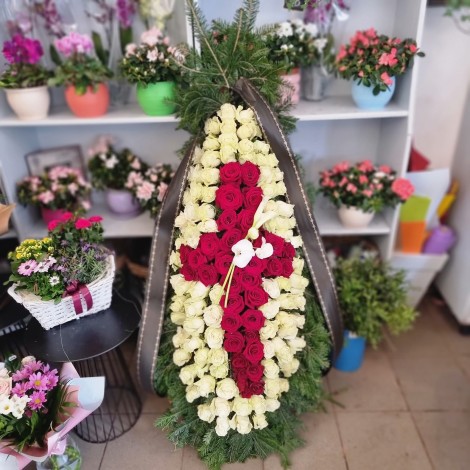Este realizata din trandafiri albi și roșii